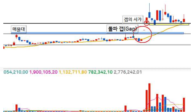 수급주체(세력) 입장에서 가장 큰돈이 들어간 상승갭 중 ‘돌파 갭’입니다.
