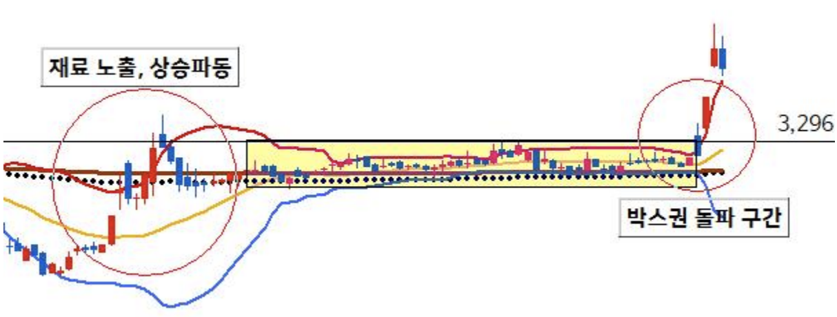 돌파 양봉 출현 박스권/다양한 패턴 형성 강한 양봉 출현
