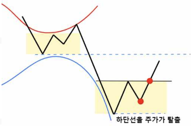 주가가 하단선을 이탈 하는 경우 급락 베이스를 형성합니다.