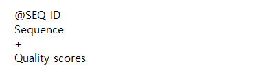 - 네 번째 줄은 각 서열에 대한 품질 값을 아스키코드로 기록하며, 서열 문자와 같은 수의 기호를 포함해야 한다고 함.