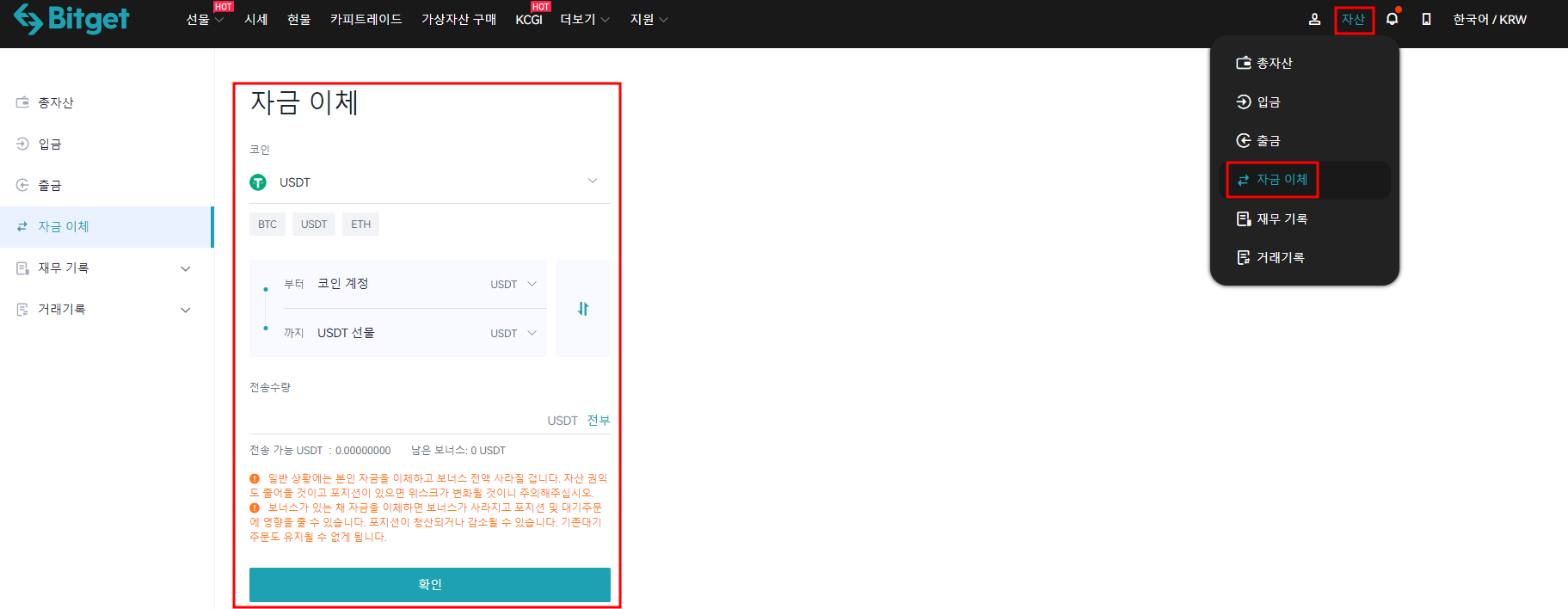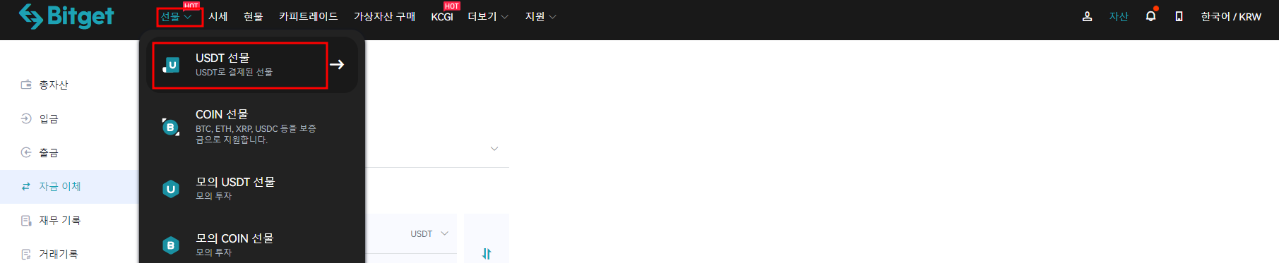 4. 현물 USDT를 선물 계정으로 옮기기