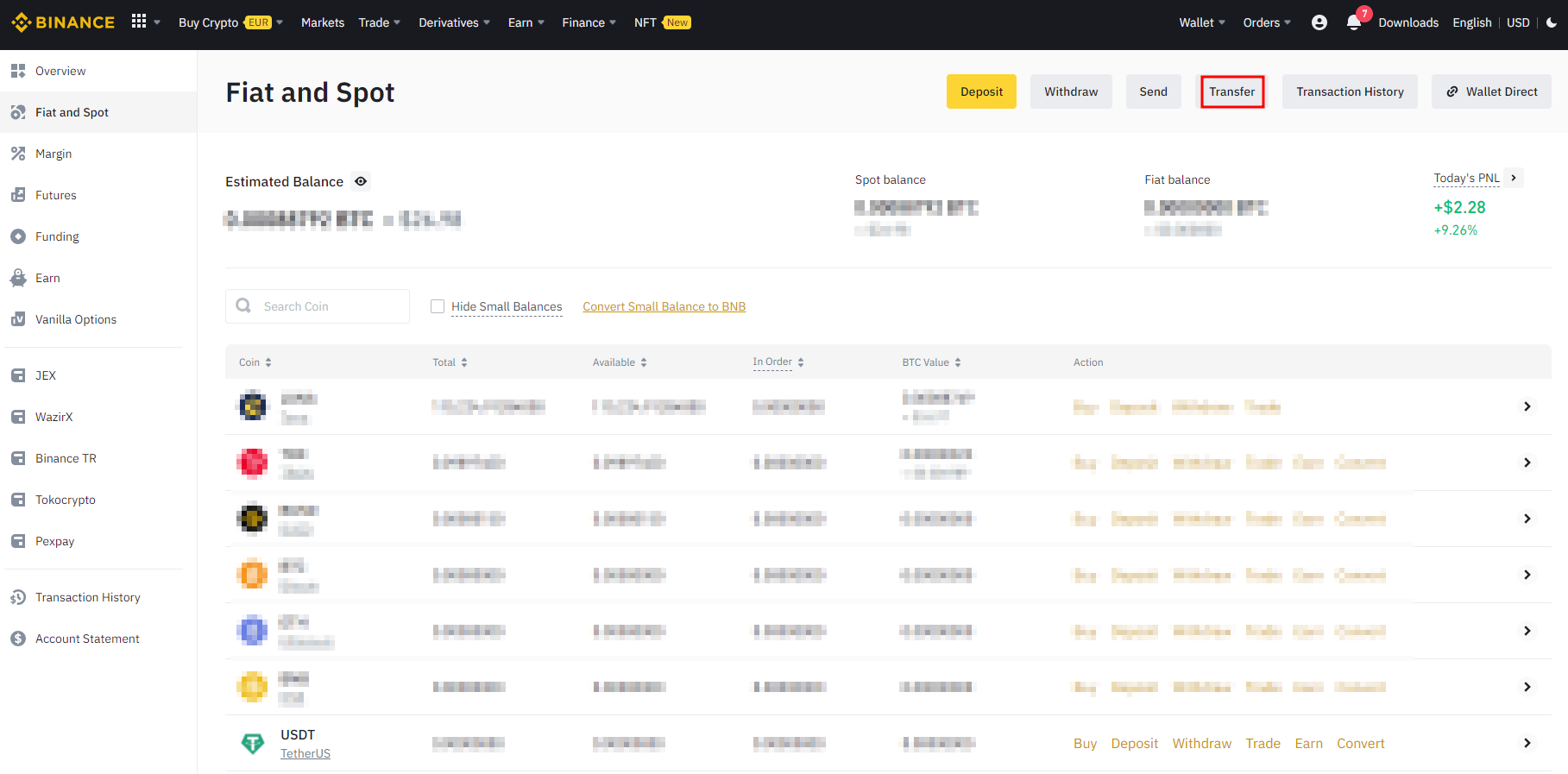 진행하게 되면 내 Fiat and Spot의 USDT에 가상 달러가 생긴 것을 볼 수 있다.